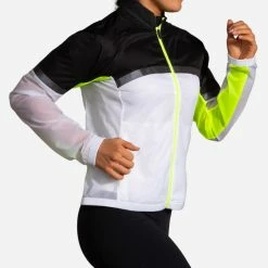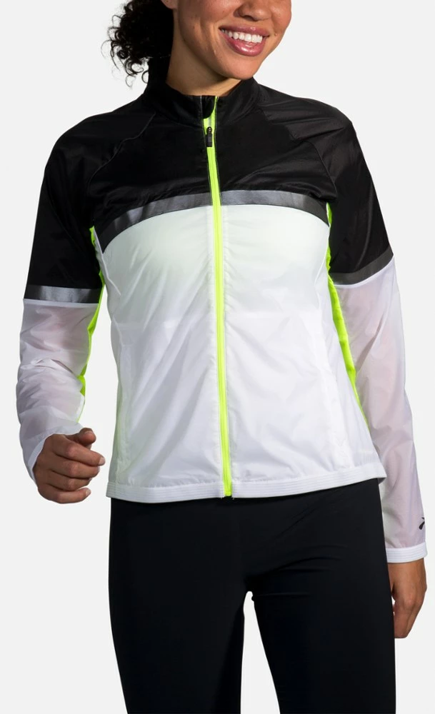 Shine bright as you run after sundown in the women’s lightweight Brooks Carbonite jacket, made with breathable, wind-blocking DriLayer® fabric with reflective elements to keep you visible.