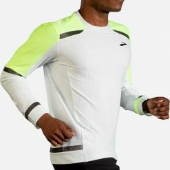 Squeezing in a run when it’s cool and dark outside? Don’t forget the Brooks Carbonite long-sleeve shirt. This high-viz top is stretchy, reflective and warm without overheating or weighing you down.