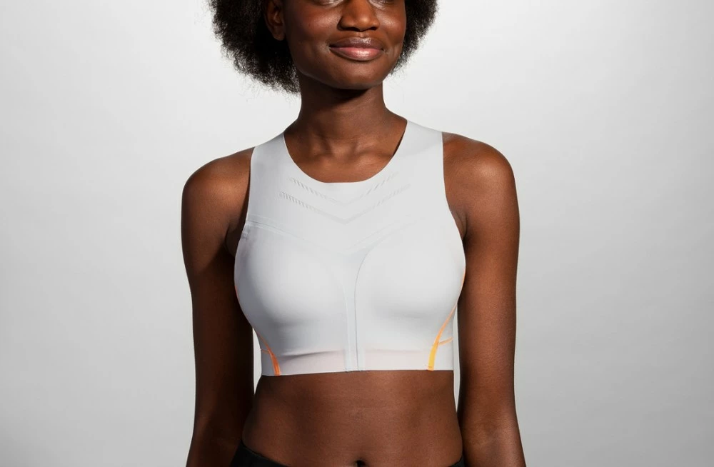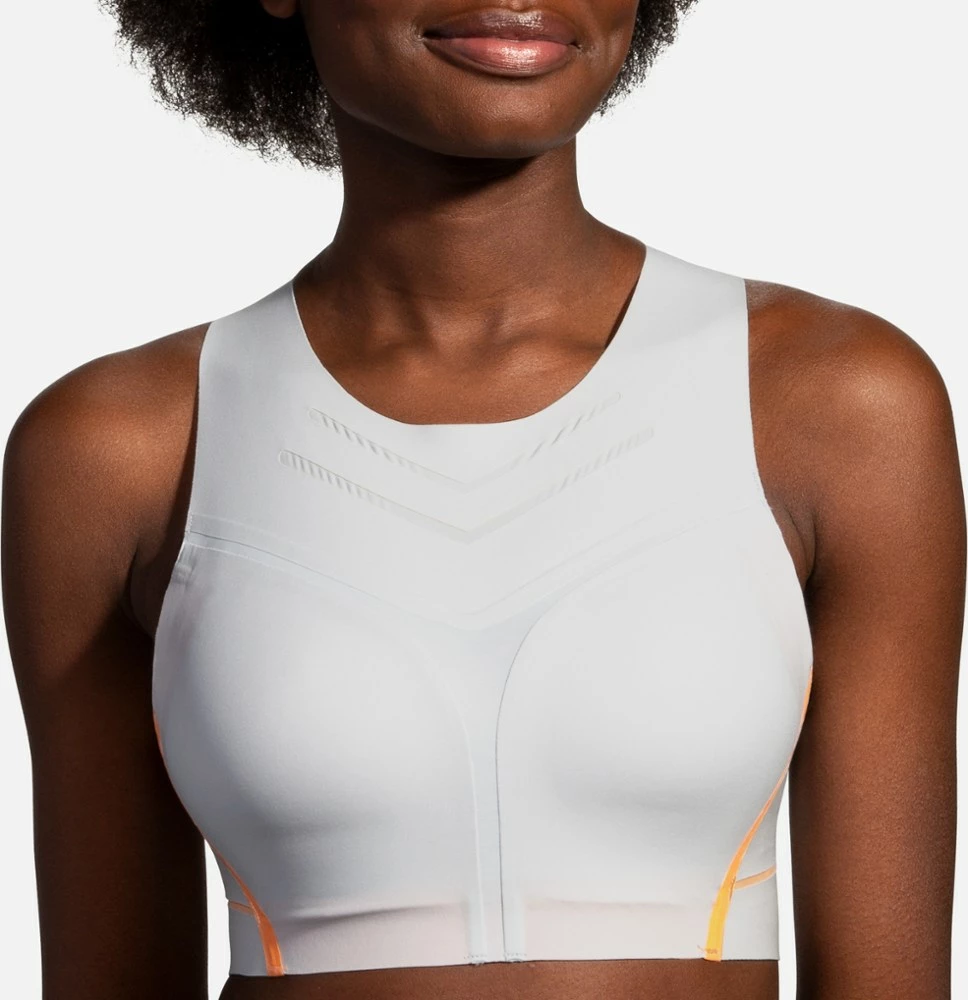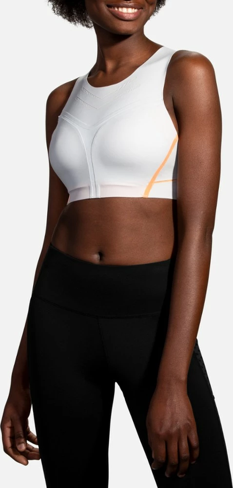 Streamlined yet supportive, the Brooks Dare High-Neck bra offers a modern, longer silhouette and high-neck cut that keep you feeling locked-in and ready to run.