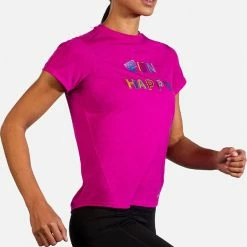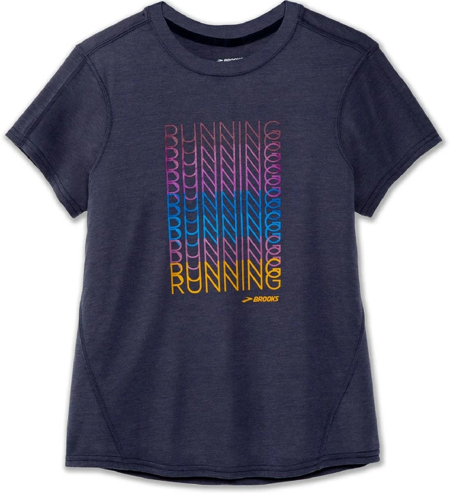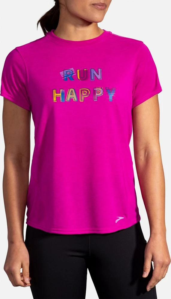 Turn up the comfort and style of your running kit with the women’s Brooks Distance Graphic T-shirt. Its soft, quick-drying fabric with fun graphics keeps you moving with ease.