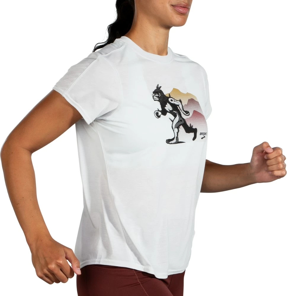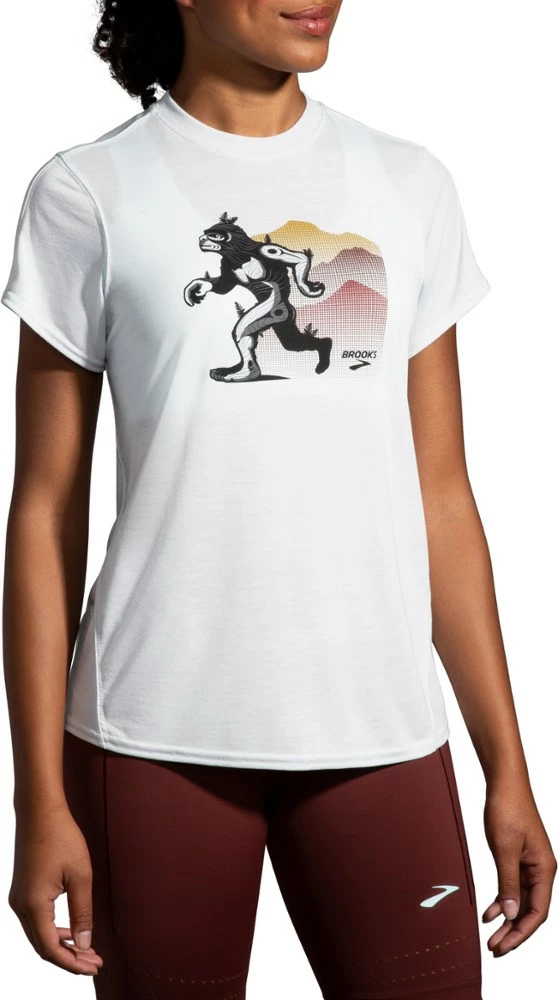 Supersoft, quick-drying fabric plus bright style equals a performance running shirt that can carry you through the day. Experience the Brooks Distance Graphic short-sleeve T-shirt on your next run.