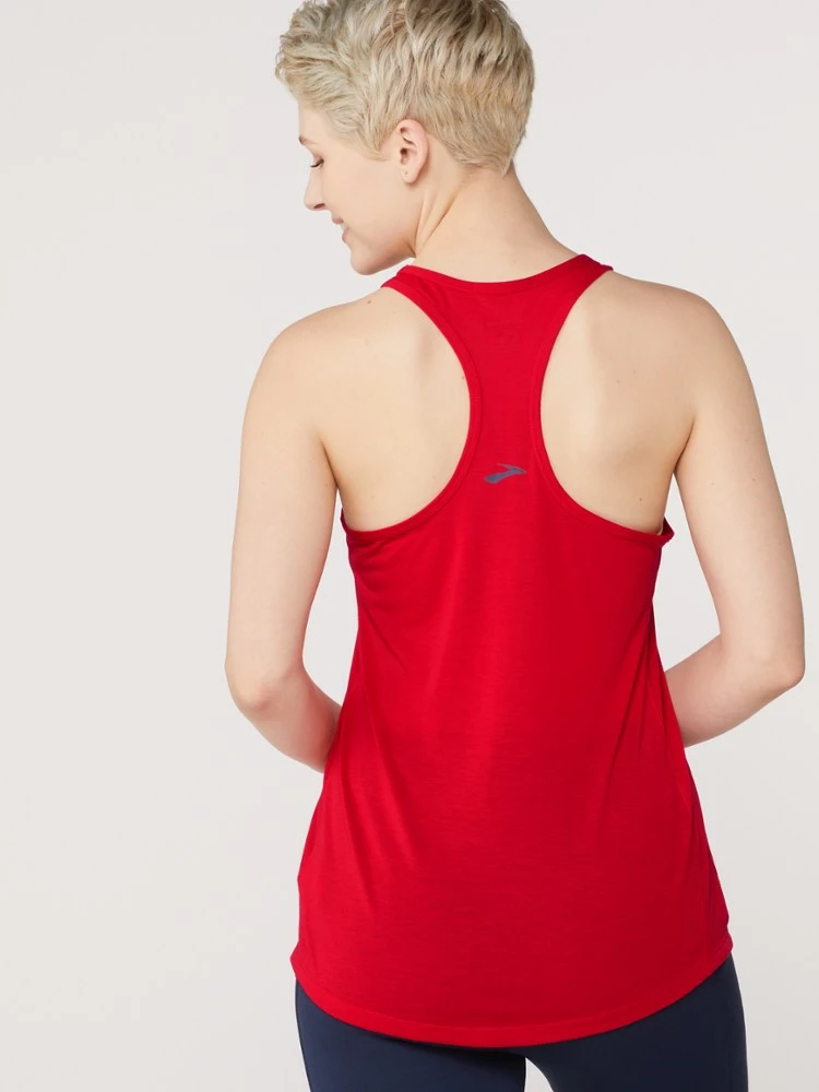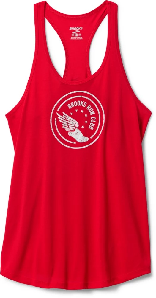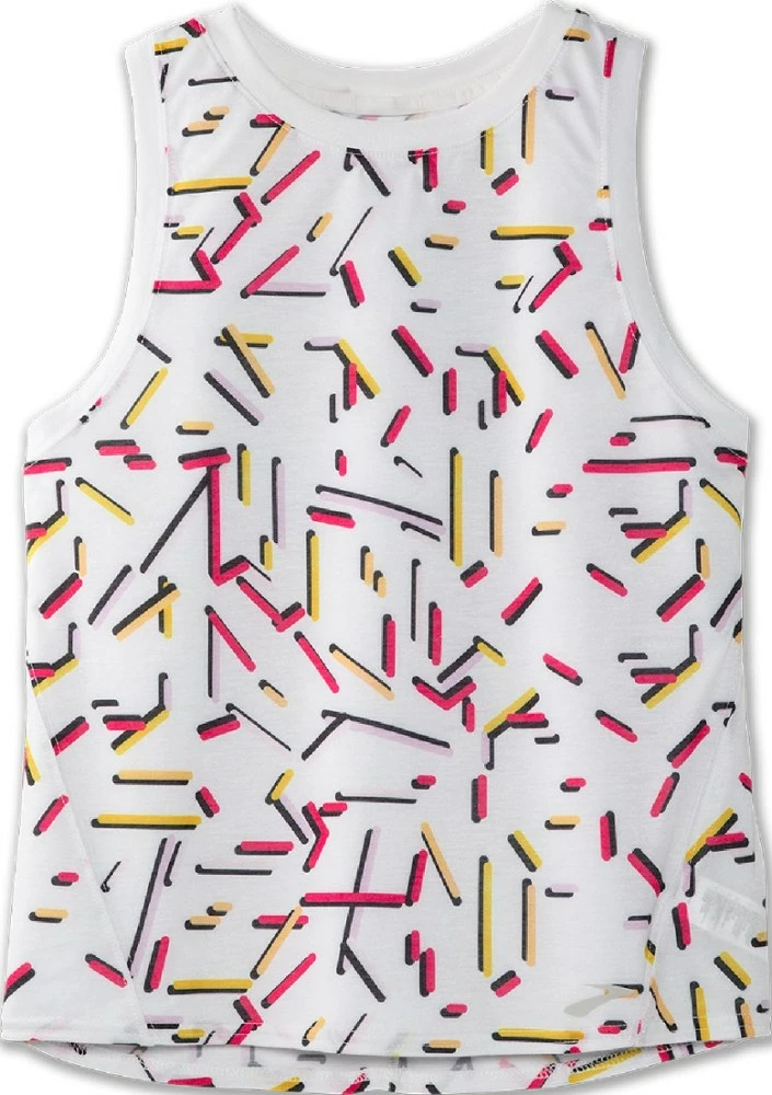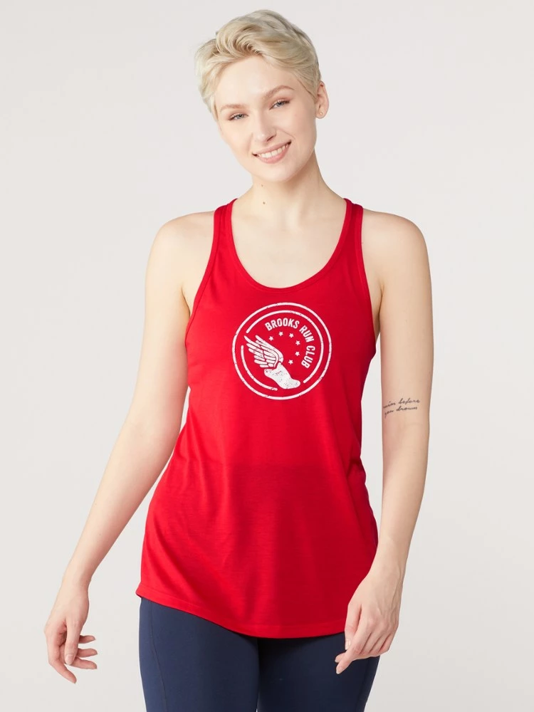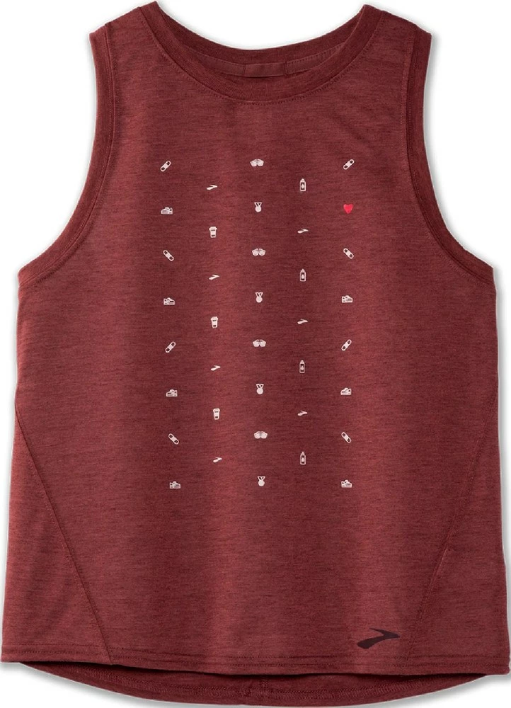Move more comfortably in the women’s Brooks Distance Graphic tank top, a go-to essential for everyday runs. It’s made from sweat-wicking DriLayer® fabric and has a redesigned, closer-to-body fit.