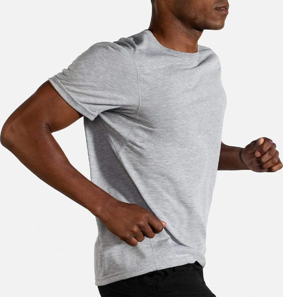 Built with soft, lightweight DriLayer® fabric that wicks moisture and dries quickly, the men’s Brooks Distance T-shirt has you covered before, during and after your run.