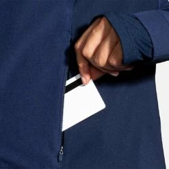- Zippered hand pockets and a drop-in pocket at the back secure your must-haves