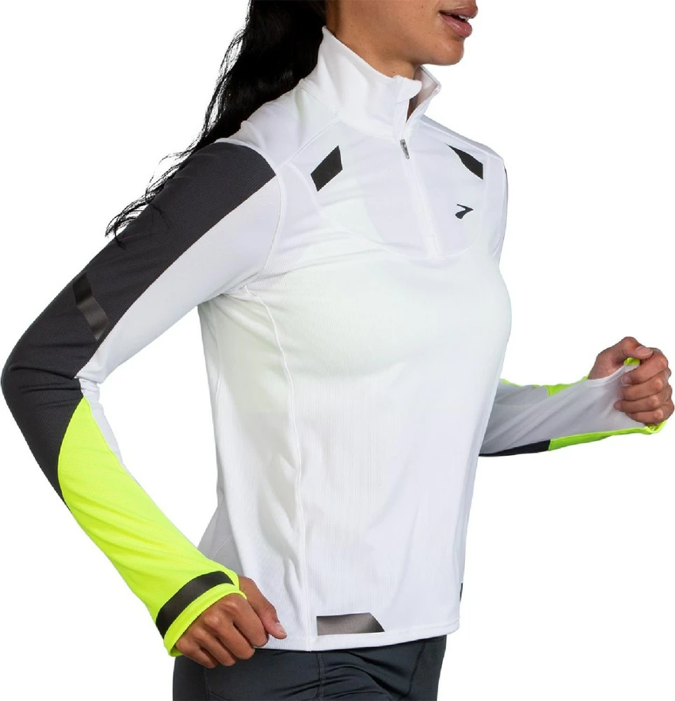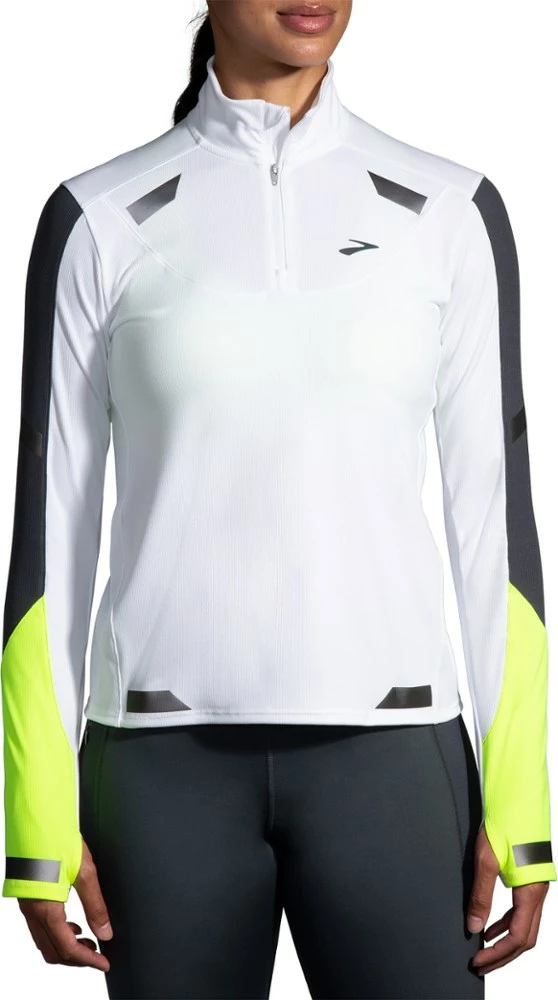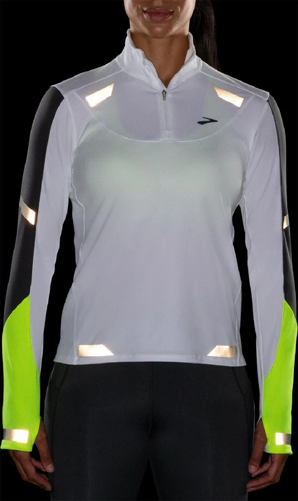 A just-right layer that shines after dark, the women’s Brooks Run Visible half-zip top is breathable, reflective and ready to go the extra mile with you on your early morning or late night workouts.