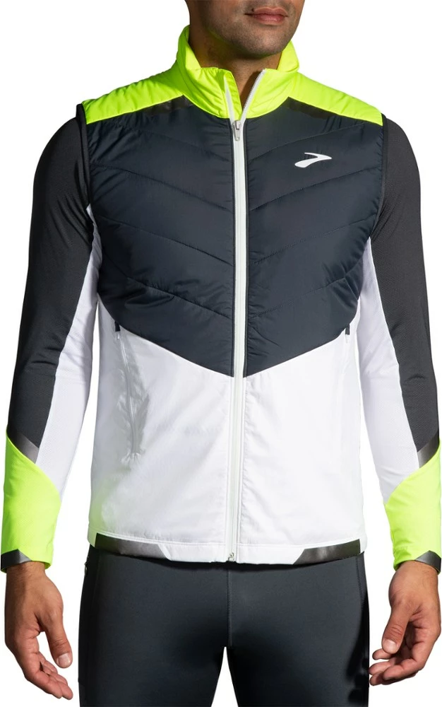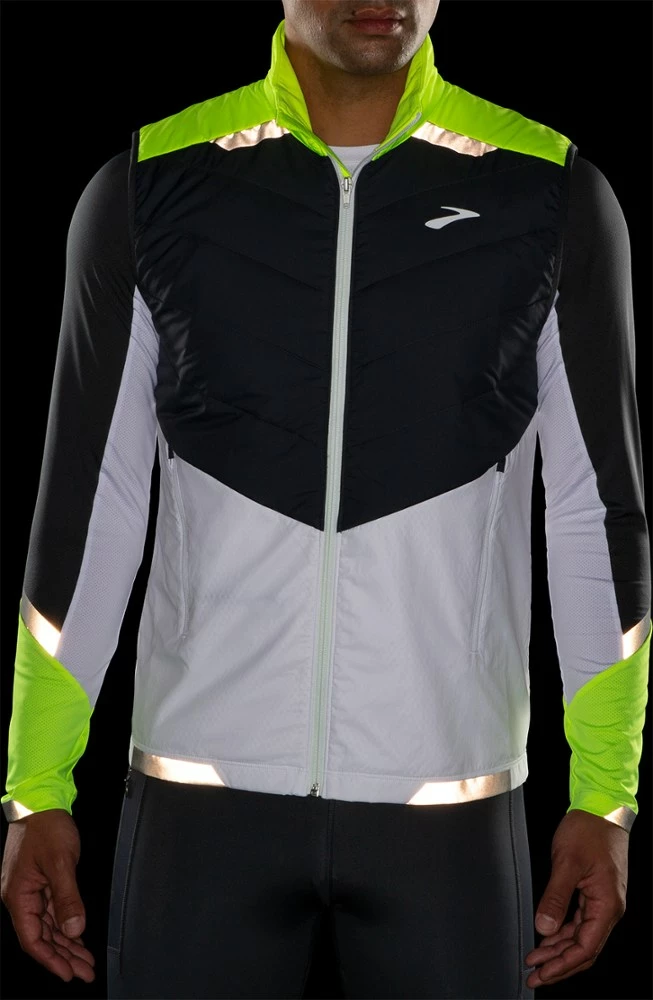 Warm, weather-resistant and reflective in critical motion zones, the men’s Brooks Run Visible insulated vest is a great layer to toss on for your workout when you want some targeted warmth.