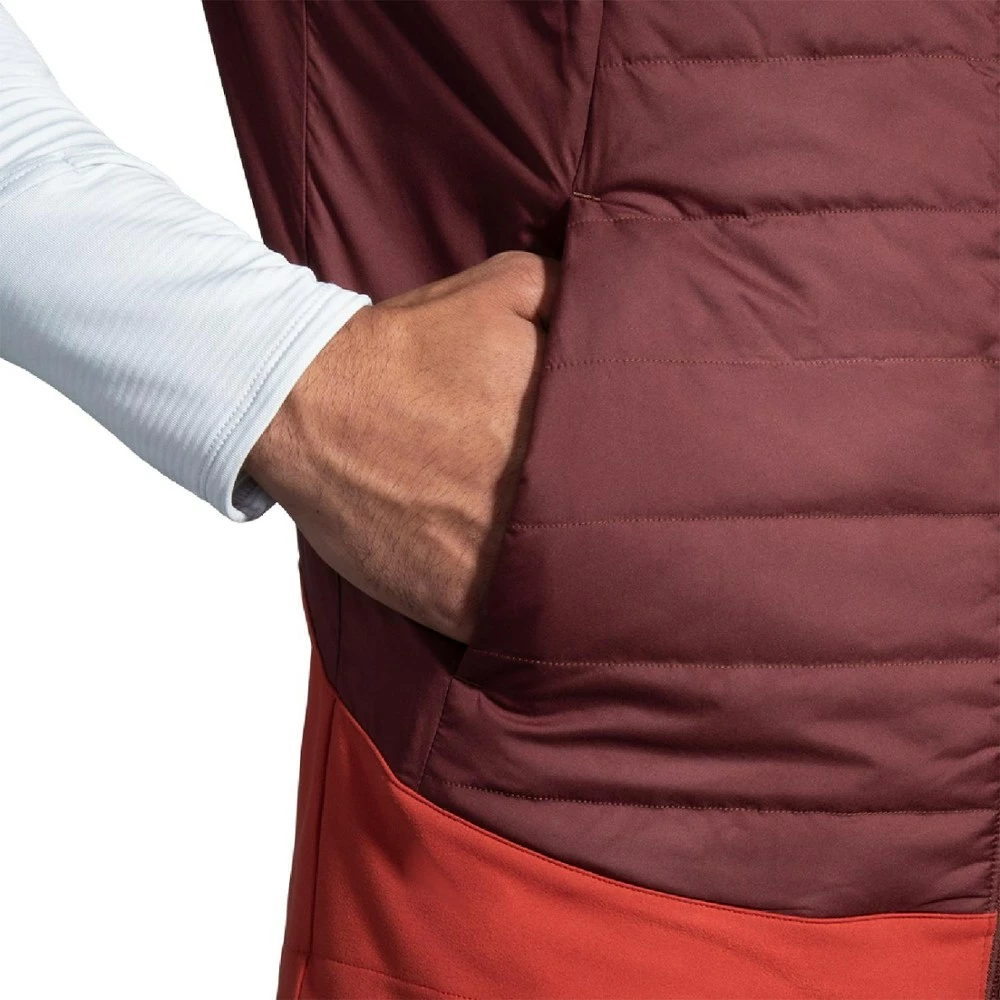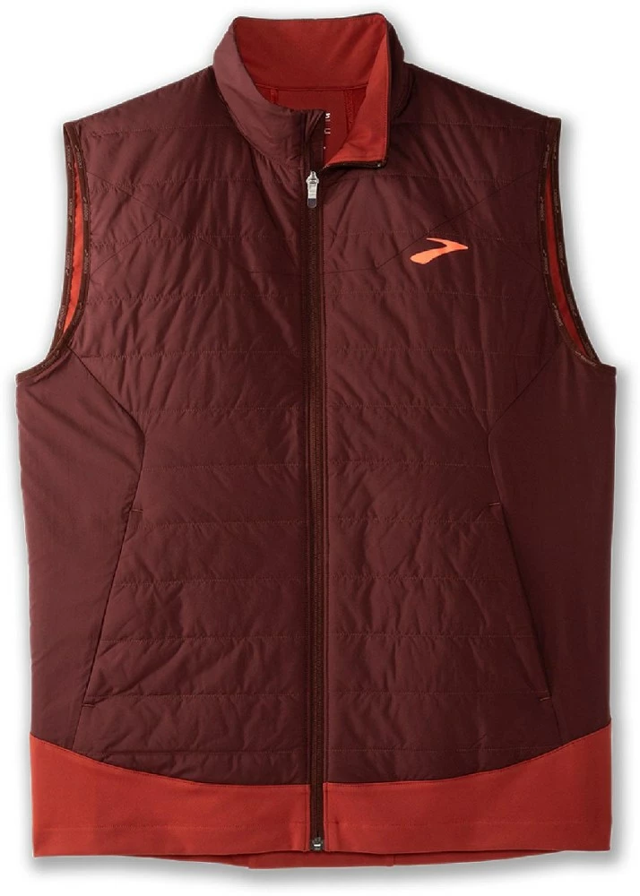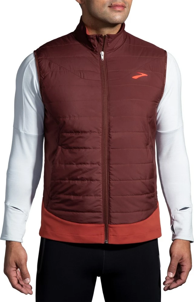 Venture out under stormy skies without excess bulk. Ready for drizzly days and changing seasons, this Brooks Shield Hybrid men’s vest resists wind and water, keeps you warm and ensures easy mobility.