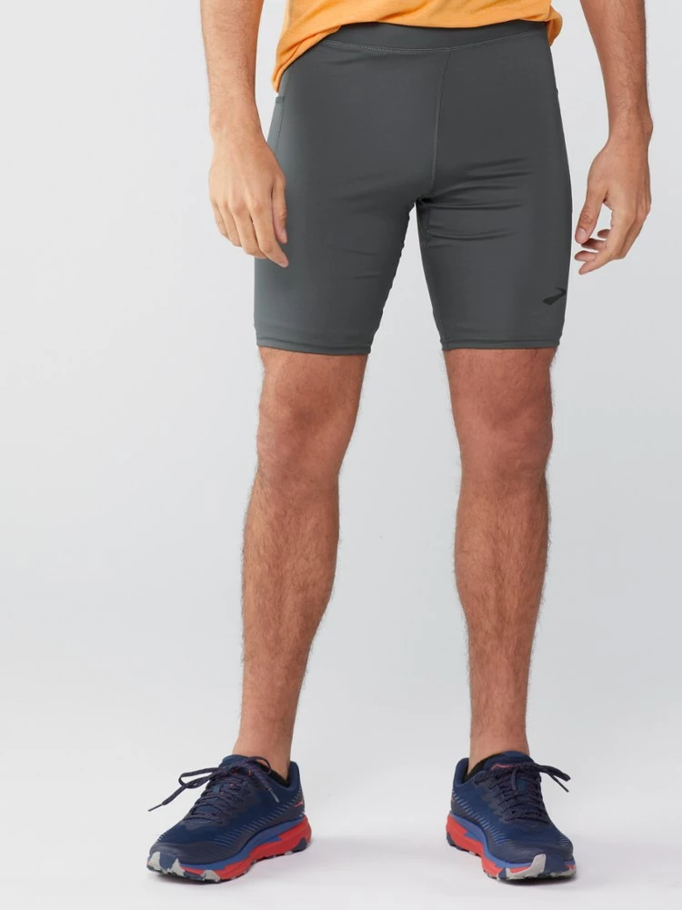 Speedy and streamlined, the men’s Brooks 9 in. Source short tights boast a compressive fit and plenty of storage for your nutrition, keys and extras. They’re great for long runs in hot weather.