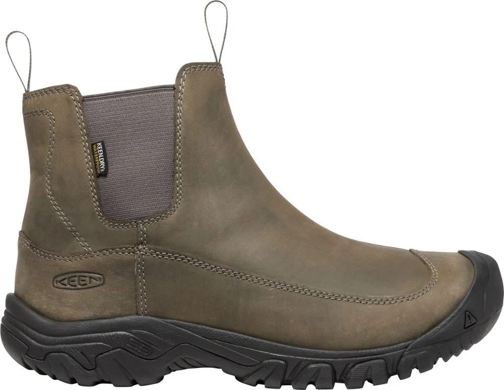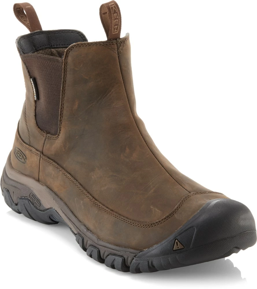Ideal for winter wear in wet weather, the nubuck KEEN Anchorage III waterproof boots pair nicely with jeans or slacks and keep your feet cozy with waterproof membranes and lightweight insulation.