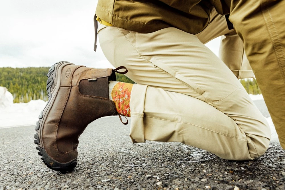 Outside doesn’t stop because it’s cold. Skip the laces and slip into the heat-trapping, water-stopping, slip-resistant men’s KEEN Revel IV Chelsea boots to take on snow days in confidence.