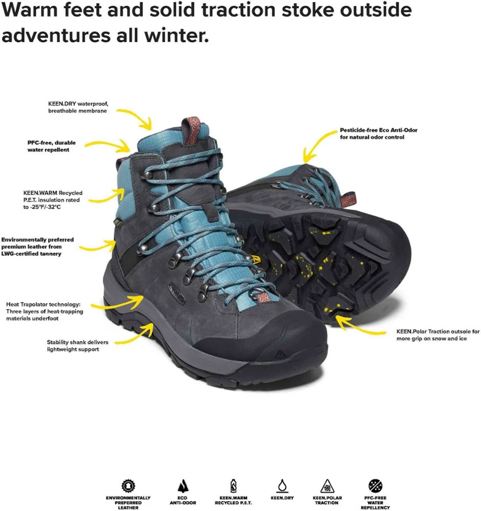 - KEEN.WARM recycled PET insulation is rated to -25°F/-32°C for warmth in cold conditions