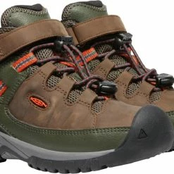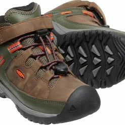 Tough and gritty on the trail, the KEEN Targhee Mid Waterproof hiking boots for little kids offer mid-height ankle support, performance and traction for leading the way on family hikes.